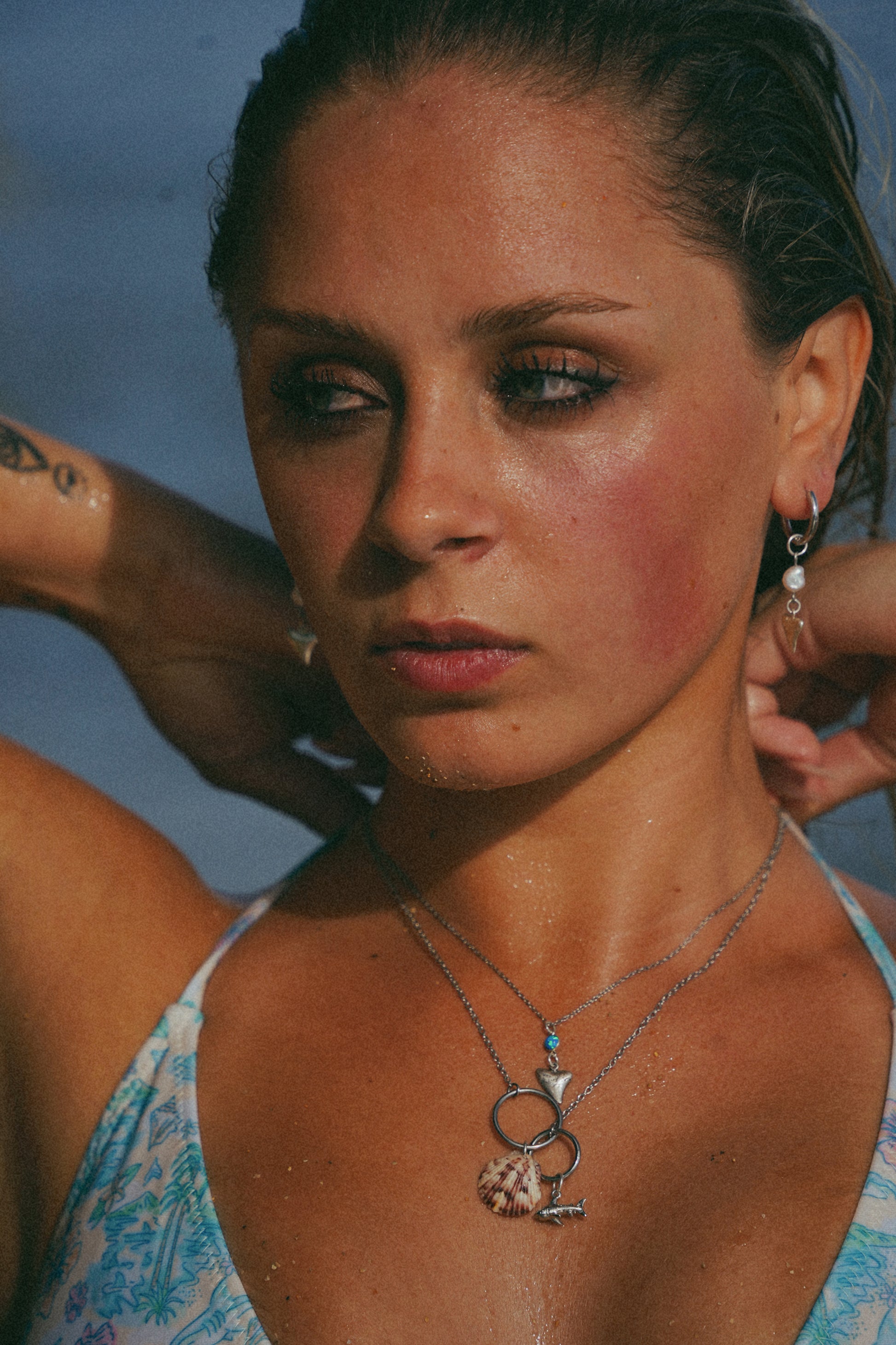 Silver Shell Shock Calico Shell Shark Charm Necklace