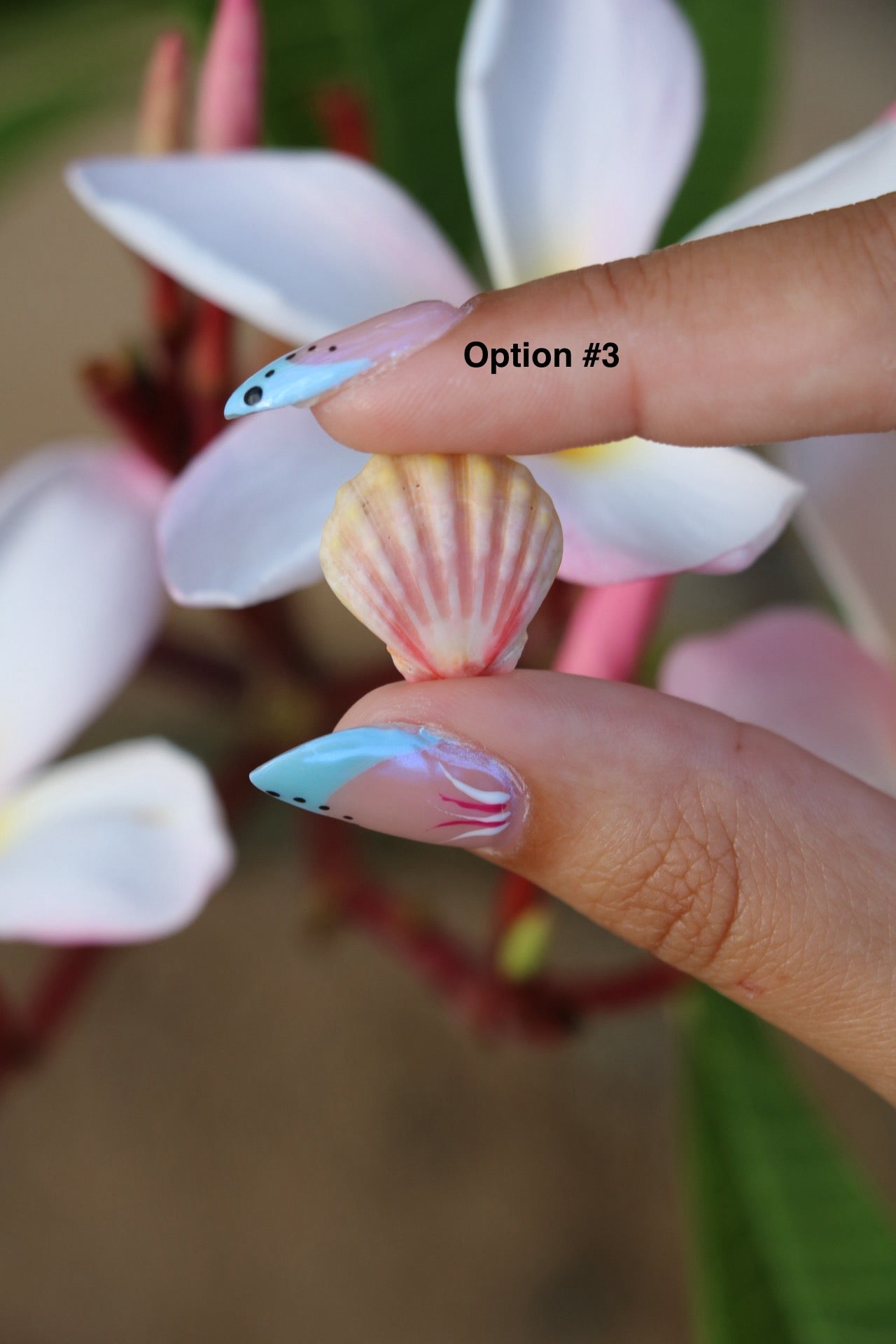 This necklace is made with lavender cowrie shells, stainless steel hardware, a sterling silver chain, fresh water pearls, and a sunrise shell